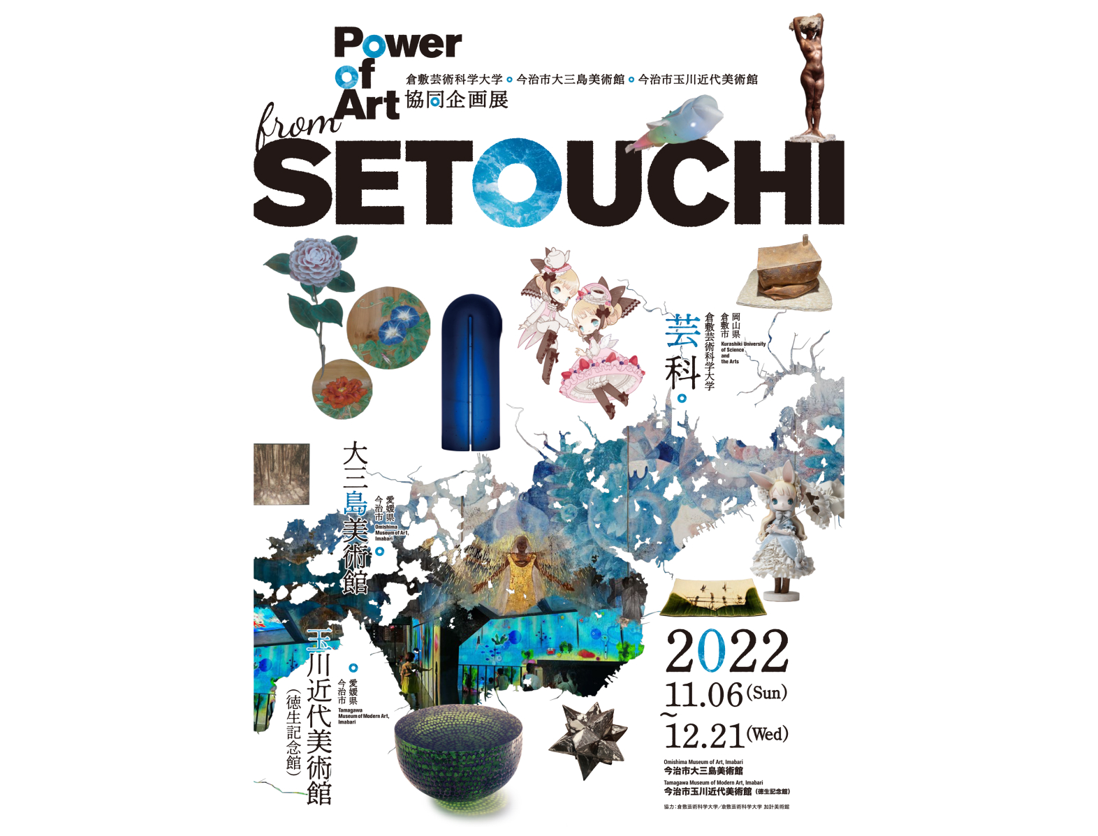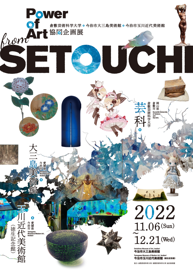 瀬戸内の芸術&科学の大学と美術館がつながって、世代もジャンルも異なるアーティストが織りなす展覧会です。瀬戸内海に浮かぶ大三島から、豊かな山の手に位置する玉川へとめぐります。